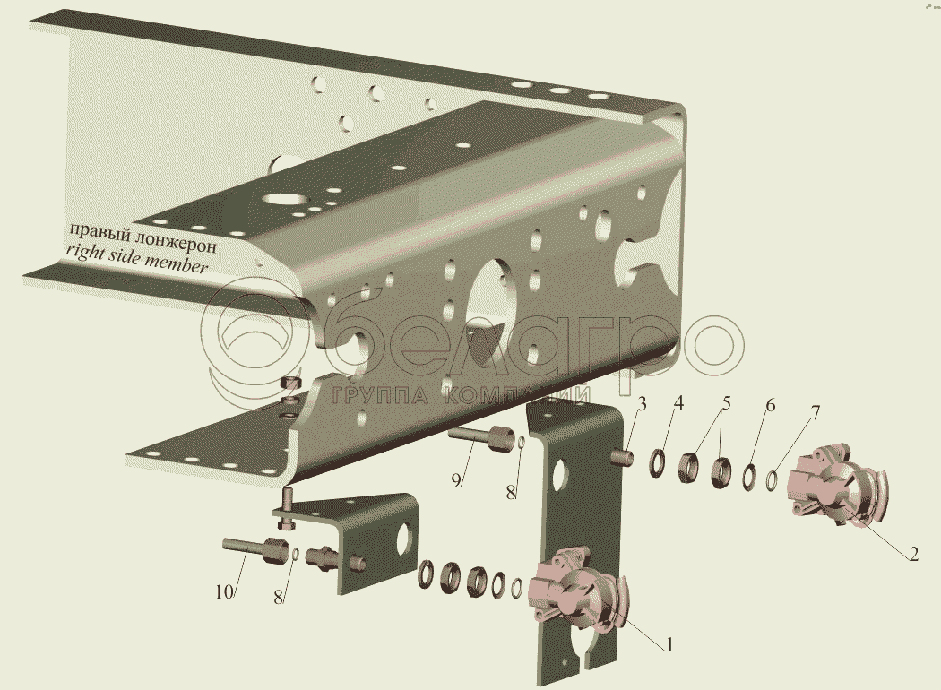 Крепление тормозных камер 643008-3519003 на среднем мосту и присоединительной арматуры