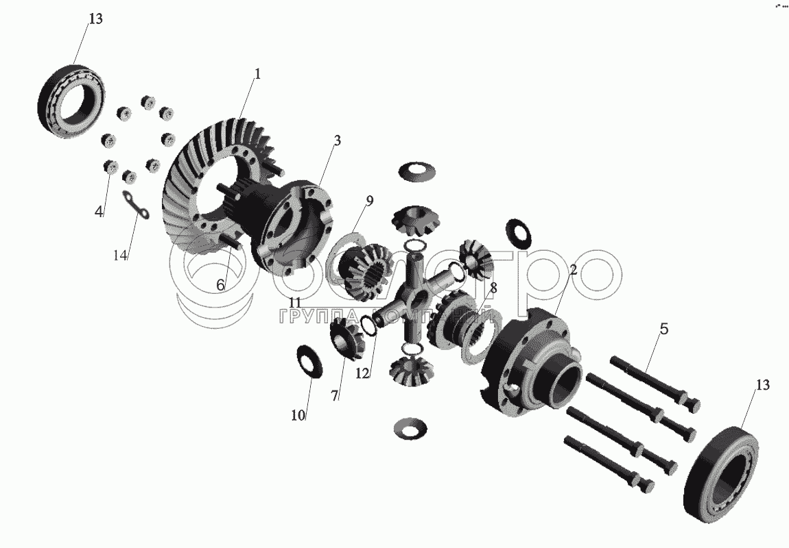 Каталог запасных частей к технике: МАЗ-650108. Редуктор заднего моста. Дифференциал