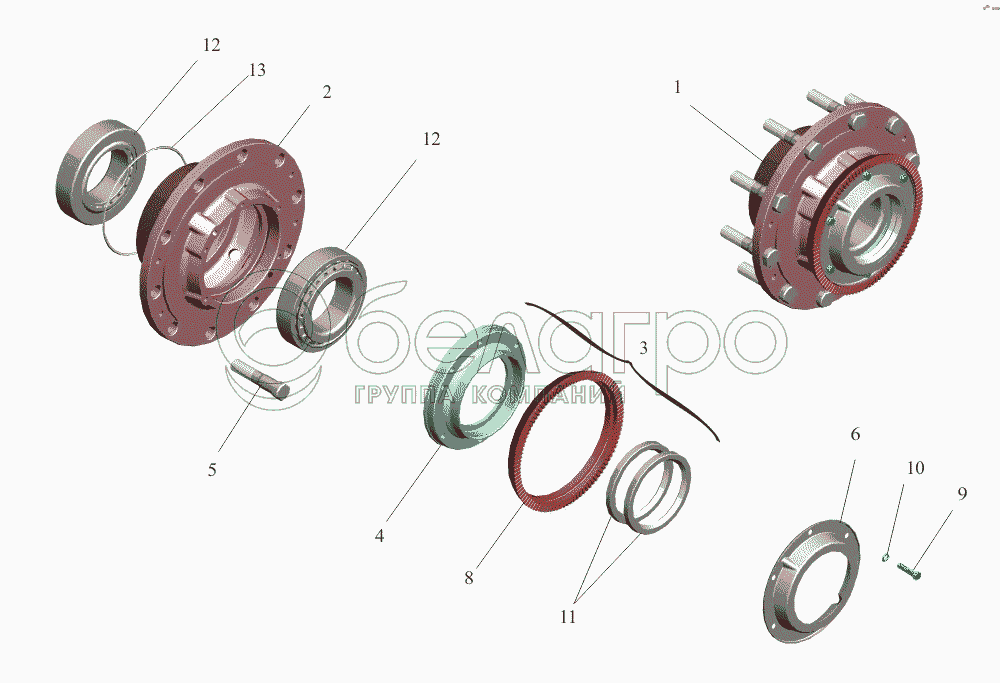 Каталог запасных частей к технике: МАЗ-650108. Ступица заднего, среднего моста