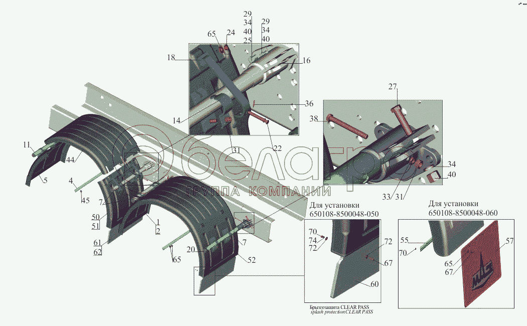 Каталог запасных частей к технике: МАЗ-650108. Установка крыльев