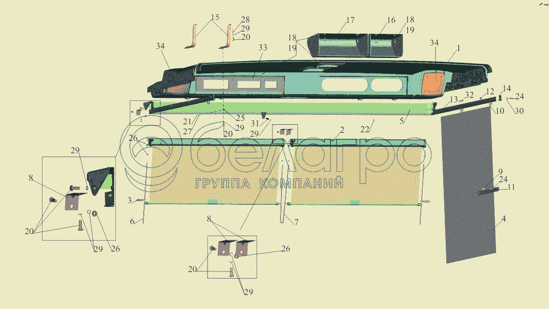 Каталог запасных частей к технике: МАЗ-650108. Установка полки и штор 6501-8200034