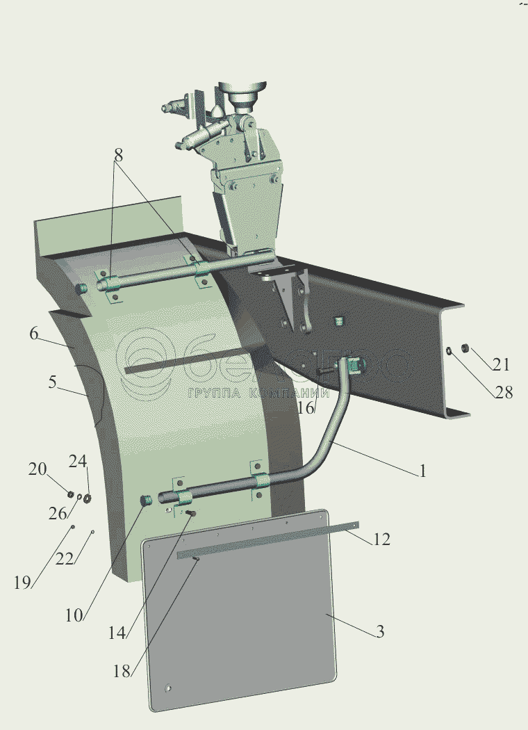 Каталог запасных частей к технике: МАЗ-650108. Установка брызговиков передних колес 6501-8400030-010