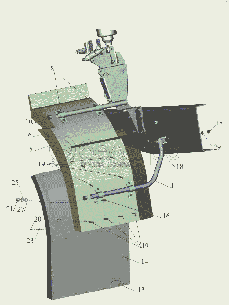 Каталог запасных частей к технике: МАЗ-650108. Установка брызговиков передних колес 6501-8400030-011