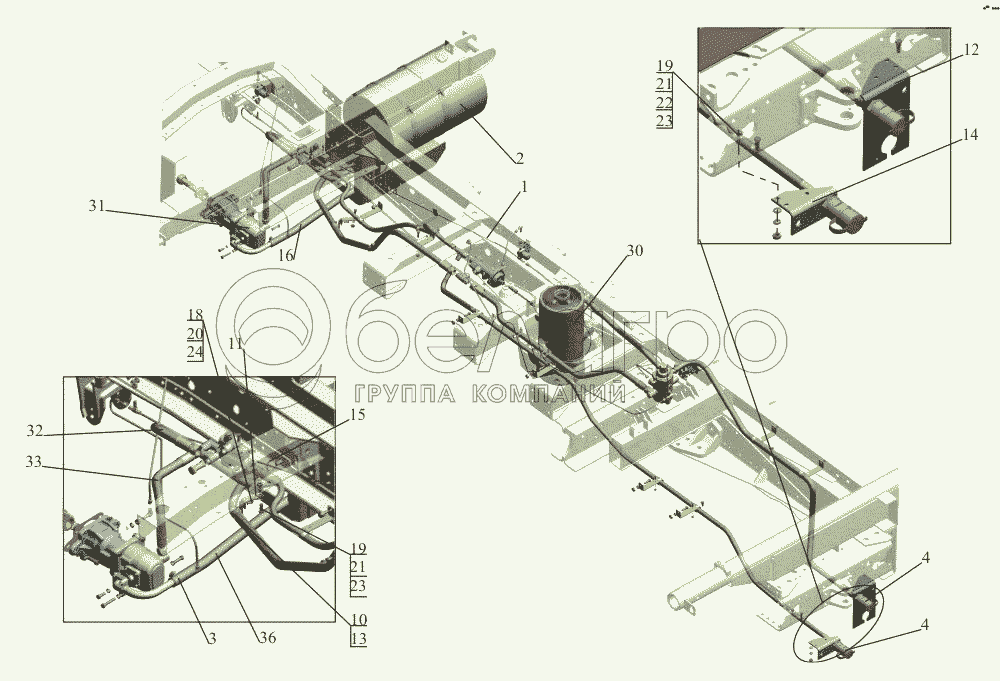 Каталог запасных частей к технике: МАЗ-650108. Установка гидрооборудования