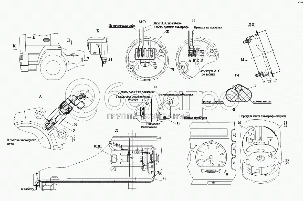 Каталог запасных частей к технике: МАЗ-650108. Установка и пломбировка тахографа 544008-3800005