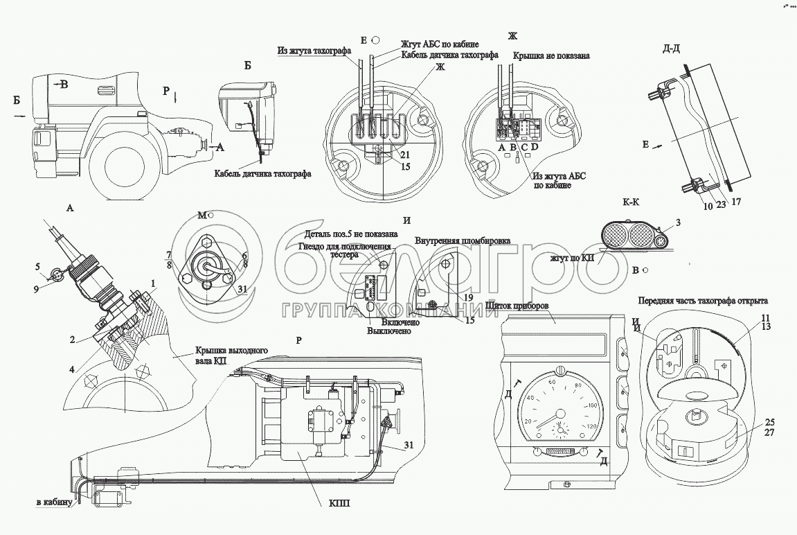 Каталог запасных частей к технике: МАЗ-650108. Установка и пломбировка тахографа 5440-3800005-020