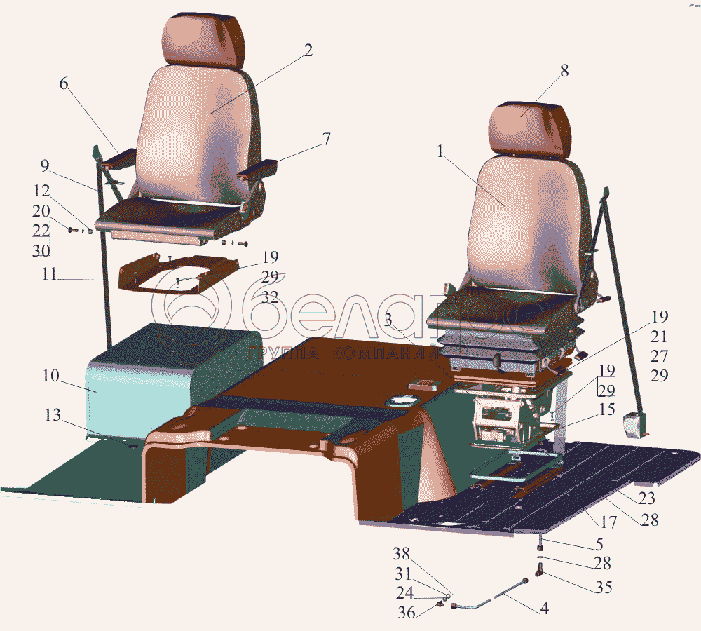 Каталог запасных частей к технике: МАЗ-650108. Установка и пневмопитание сидений 544003-6800006