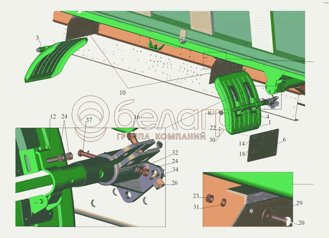 Каталог запасных частей к технике: МАЗ-650108. Установка крыльев 650108-8500048