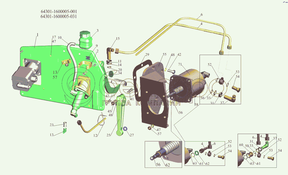 Каталог запасных частей к технике: МАЗ-650108. Установка механизма управления сцеплением