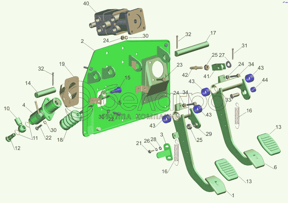 Каталог запасных частей к технике: МАЗ-650108. Установка механизма управления сцеплением