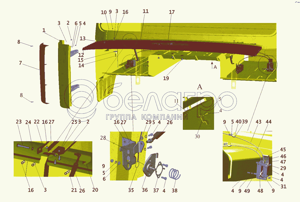 Каталог запасных частей к технике: МАЗ-650108. Установка облицовки и боковых щитков 6430-8400018