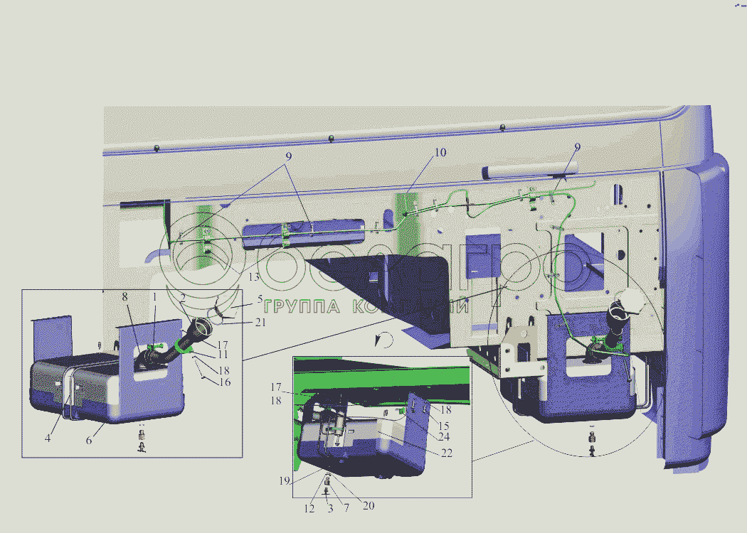 Каталог запасных частей к технике: МАЗ-650108. Установка омывателя 6430-5200008