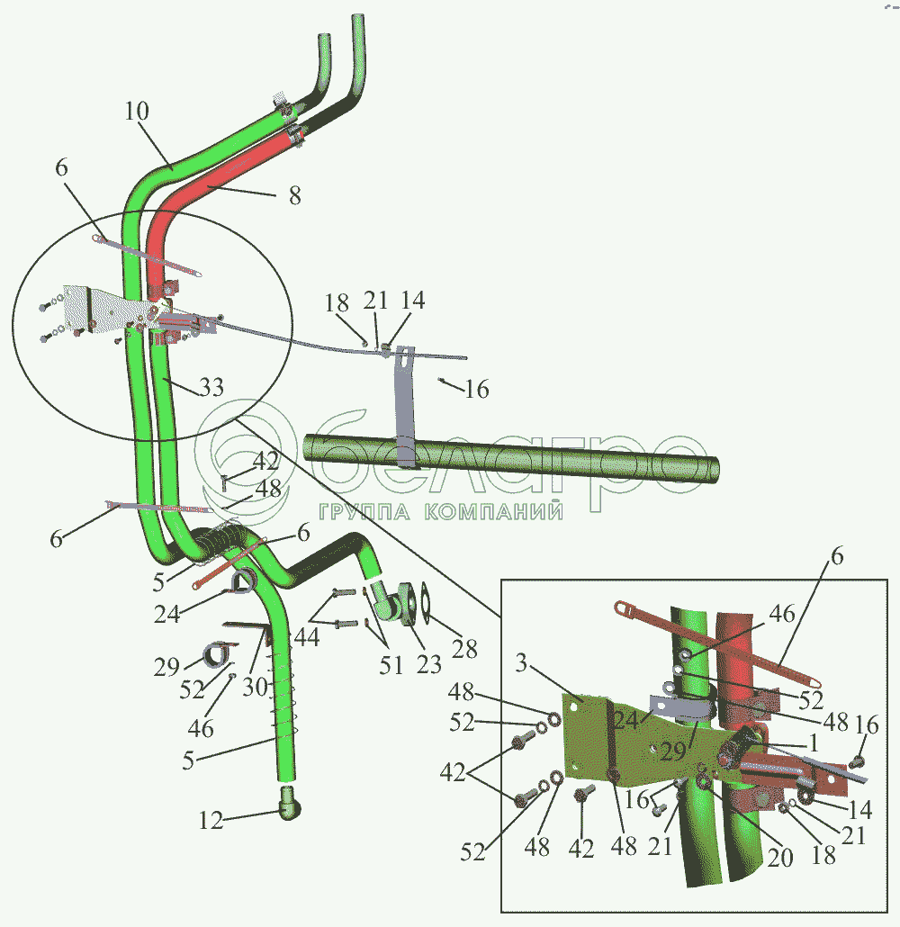 Каталог запасных частей к технике: МАЗ-650108. Установка шлангов отопителя 643008-8100006 без НЖП