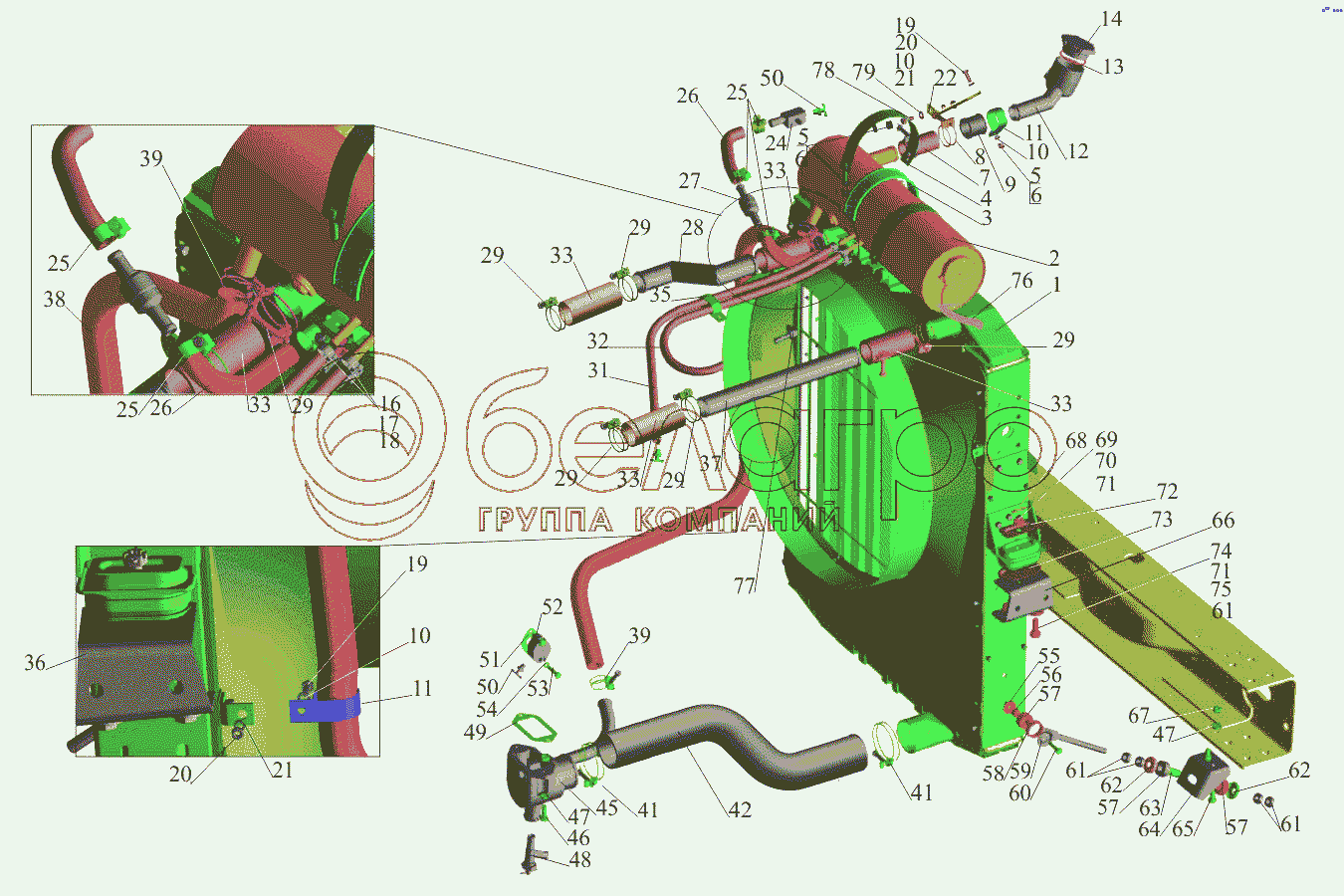 Каталог запасных частей к технике: МАЗ-650108. Установка системы охлаждения