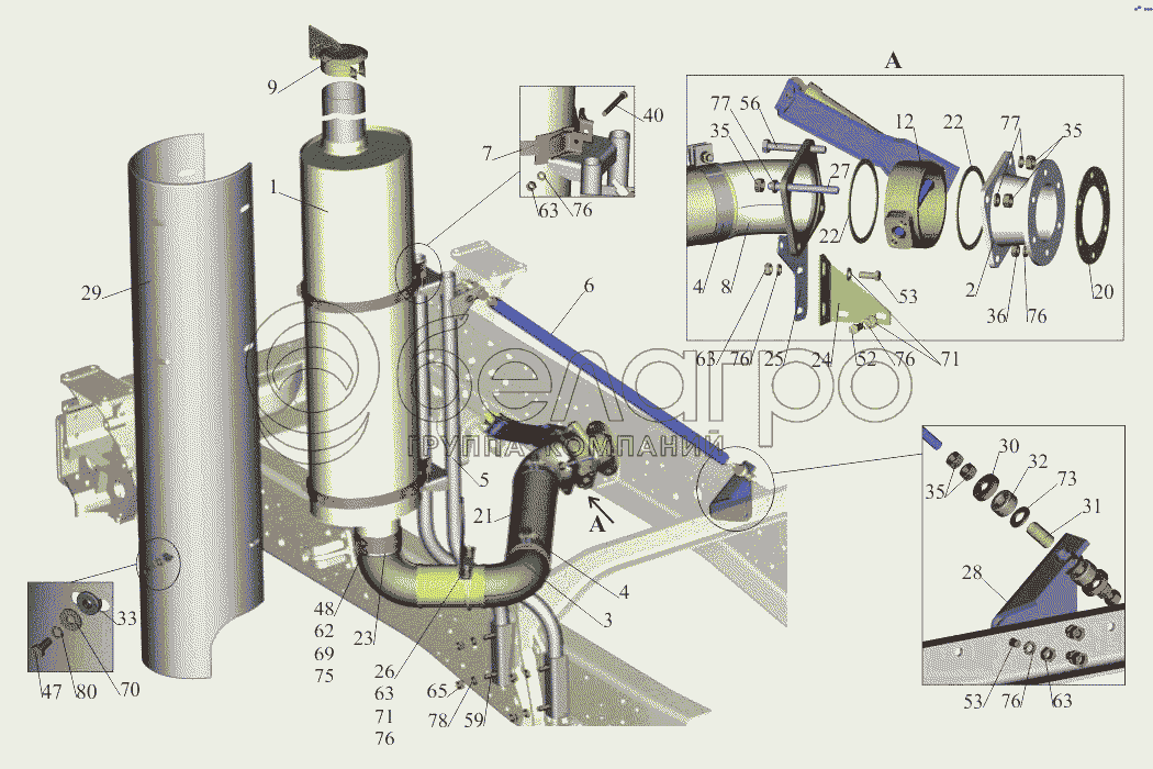 Каталог запасных частей к технике: МАЗ-650108. Установка системы выпуска газов 6501A8-1200001-010