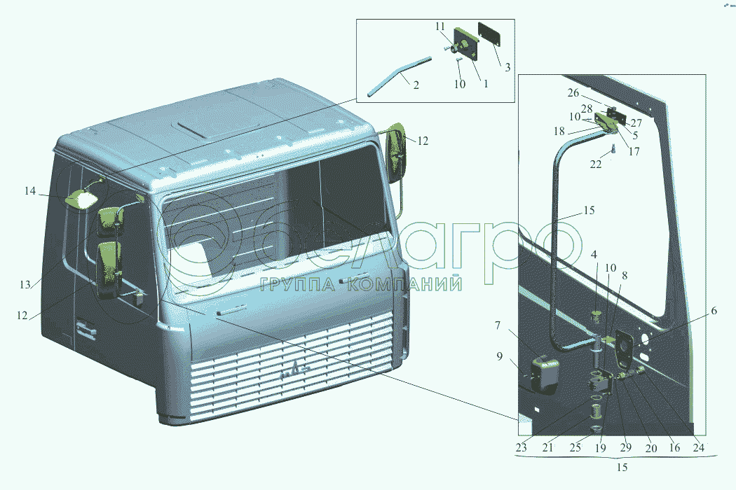 Каталог запасных частей к технике: МАЗ-650108. Установка зеркал 6430-8200005