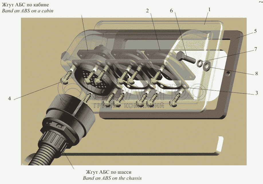 Каталог запасных частей к технике: МАЗ-650108. Ввод жгутов АБС по шасси в кабину