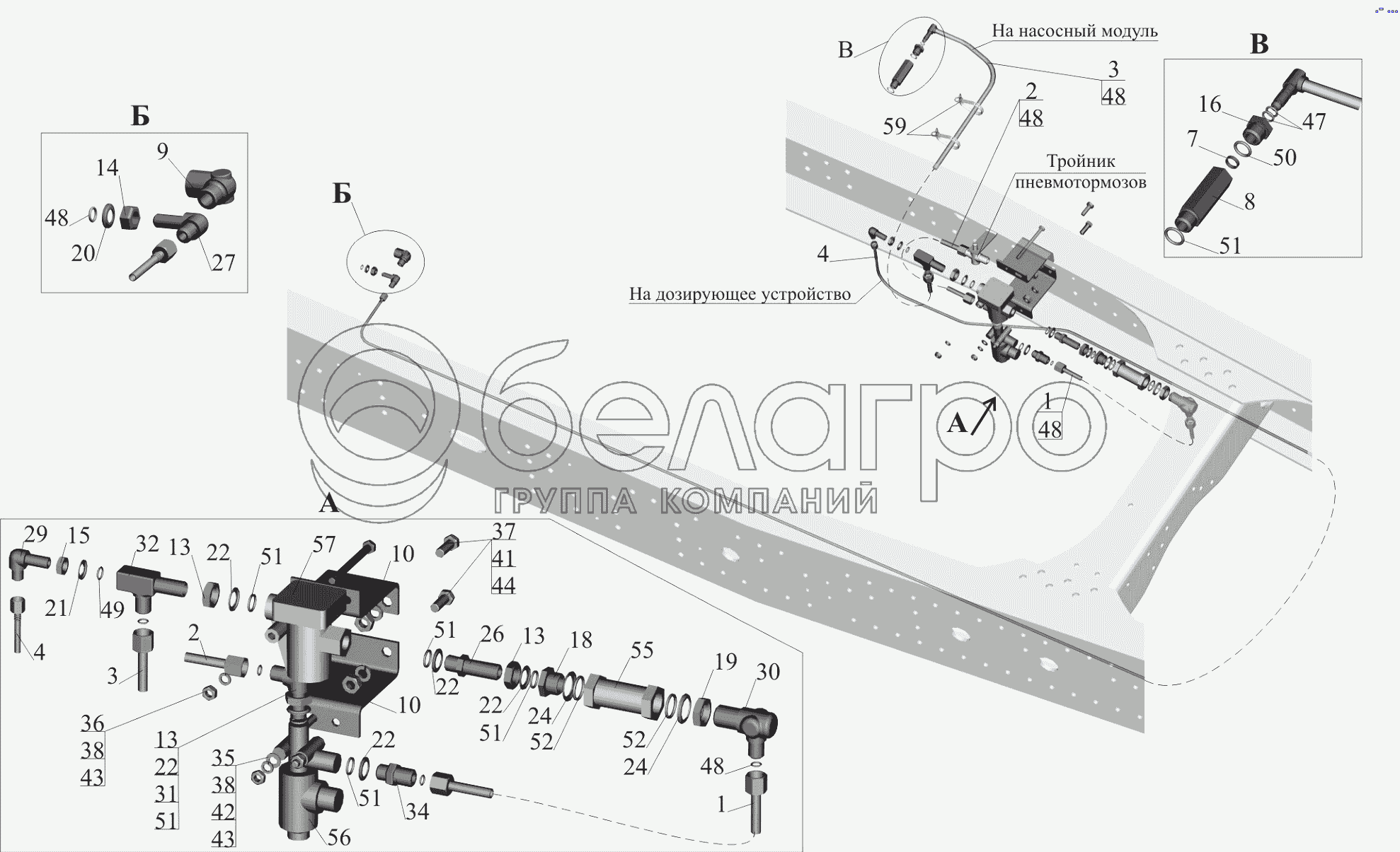Каталог запасных частей к технике: МАЗ-650119. Крепление аппаратов подготовки воздуха 650119-1401010