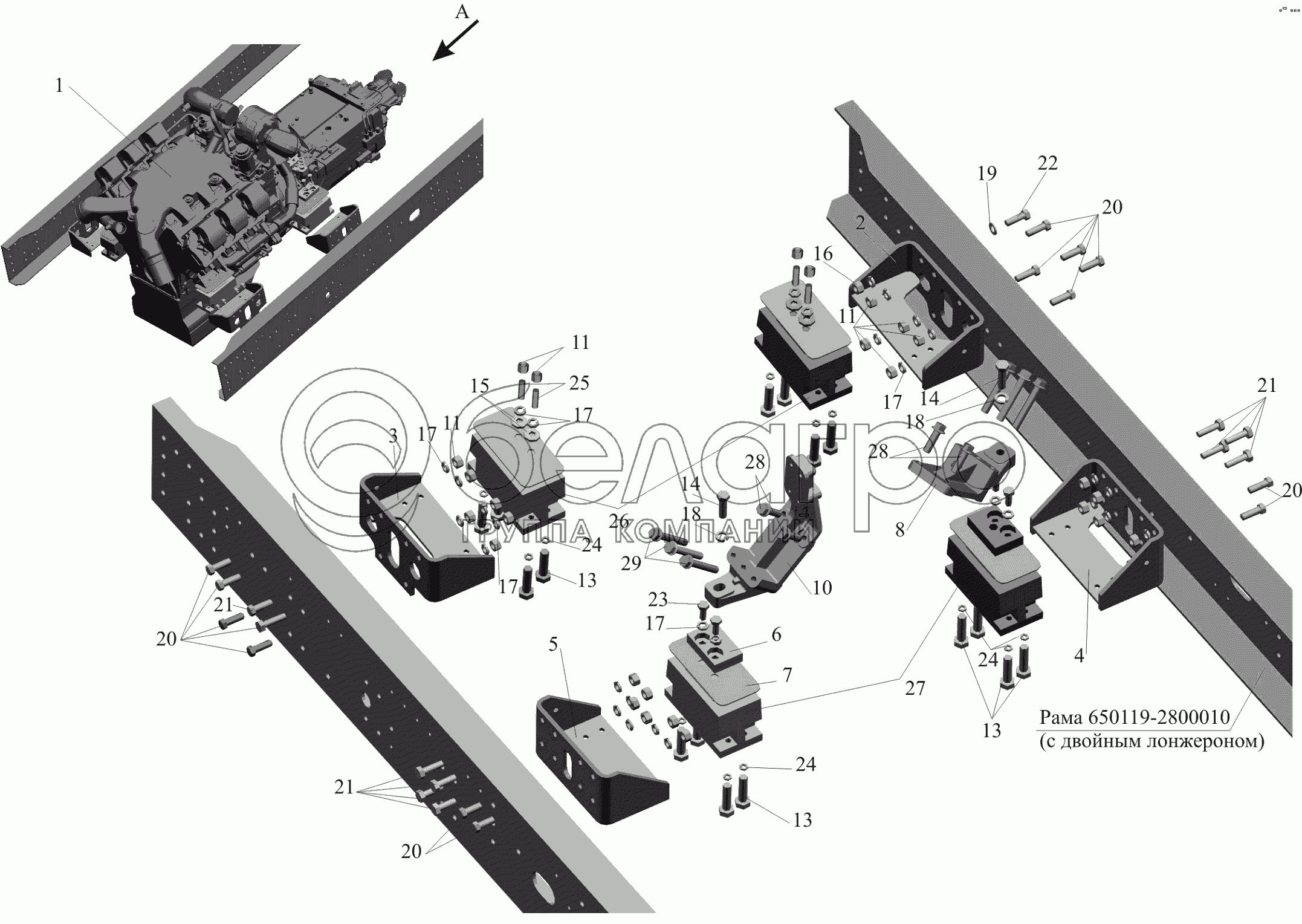 Каталог запасных частей к технике: МАЗ-650119. Крепление двигателя