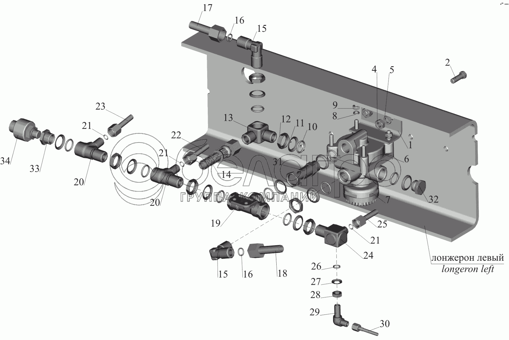 Каталог запасных частей к технике: МАЗ-650119. Крепление клапана ускорительного 650119-351800