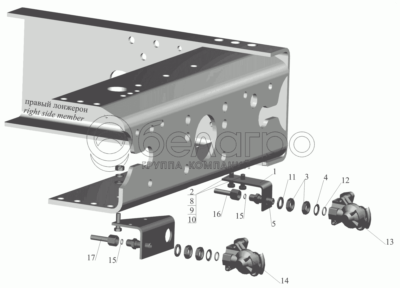 Крепление тормозных камер 643008-3519003 на среднем мосту