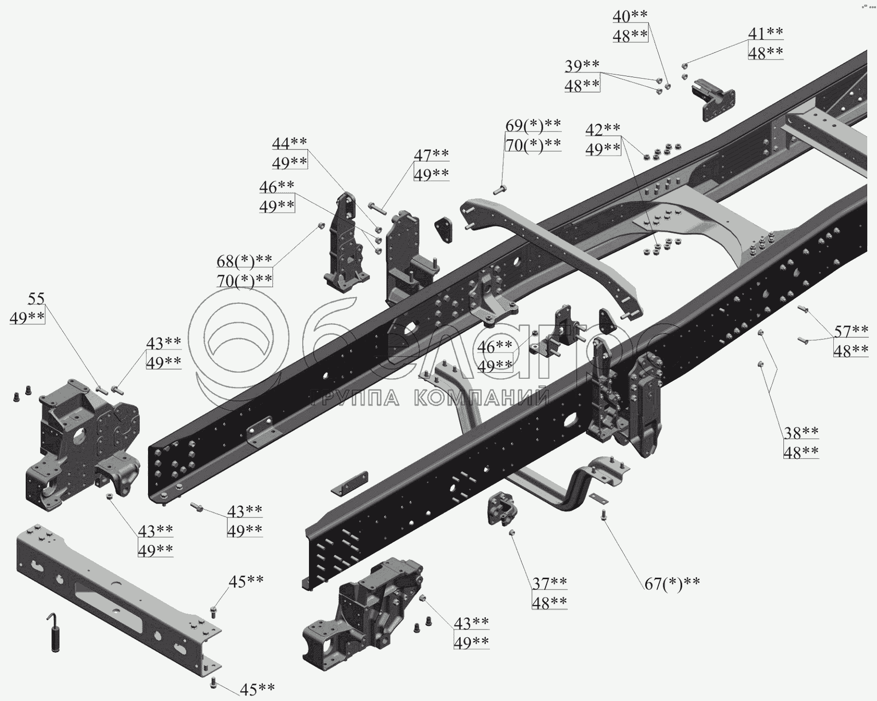Каталог запасных частей к технике: МАЗ-650119. Рамы 650119-2800010 (650119-2801002)