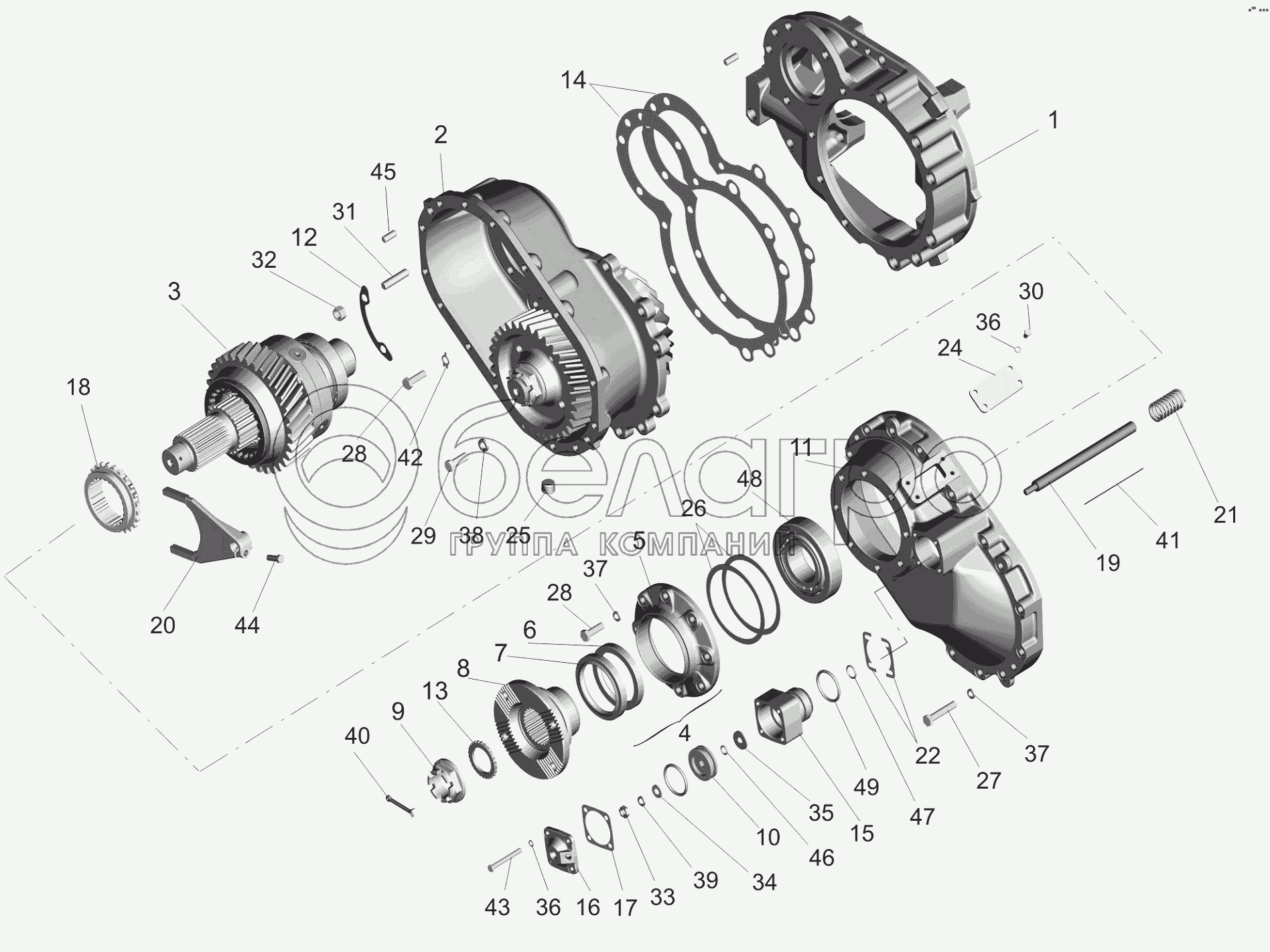 Каталог запасных частей к технике: МАЗ-650119. Редуктор среднего моста 643012-2502010