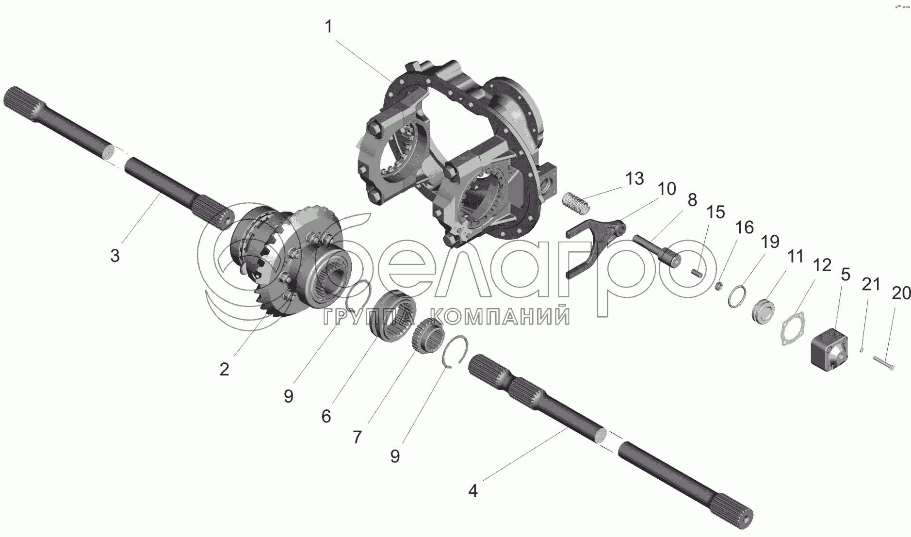 Каталог запасных частей к технике: МАЗ-650119. Редуктор среднего моста. Межколесная блокировка дифференциала