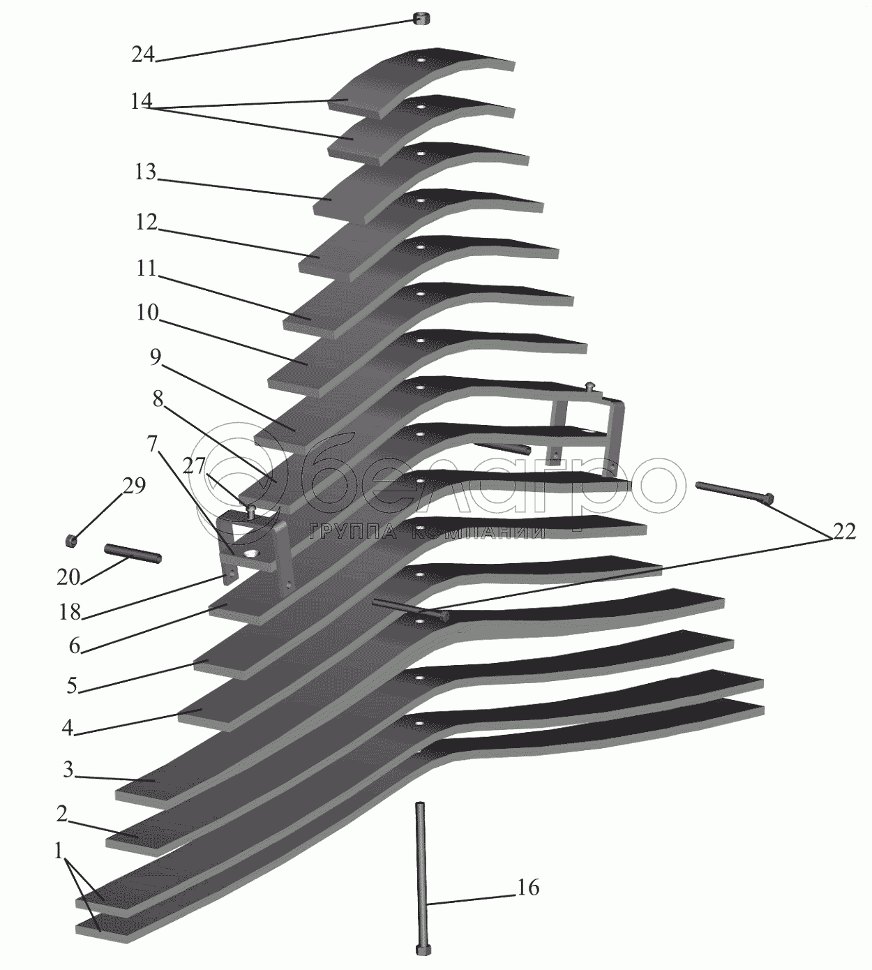 Каталог запасных частей к технике: МАЗ-650119. Рессора задняя 55165-2912012-010