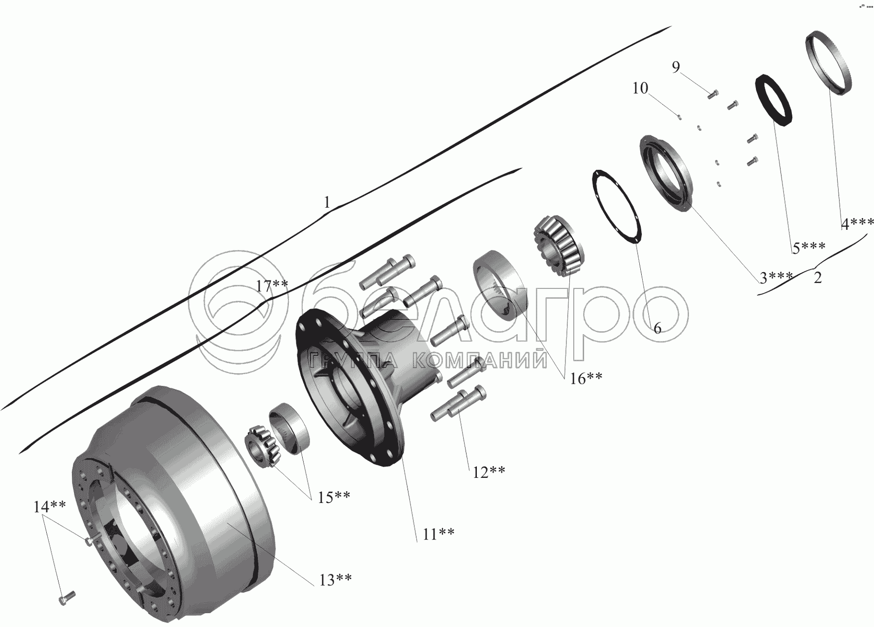 Каталог запасных частей к технике: МАЗ-650119. Ступица переднего колеса 6430-3103006-010