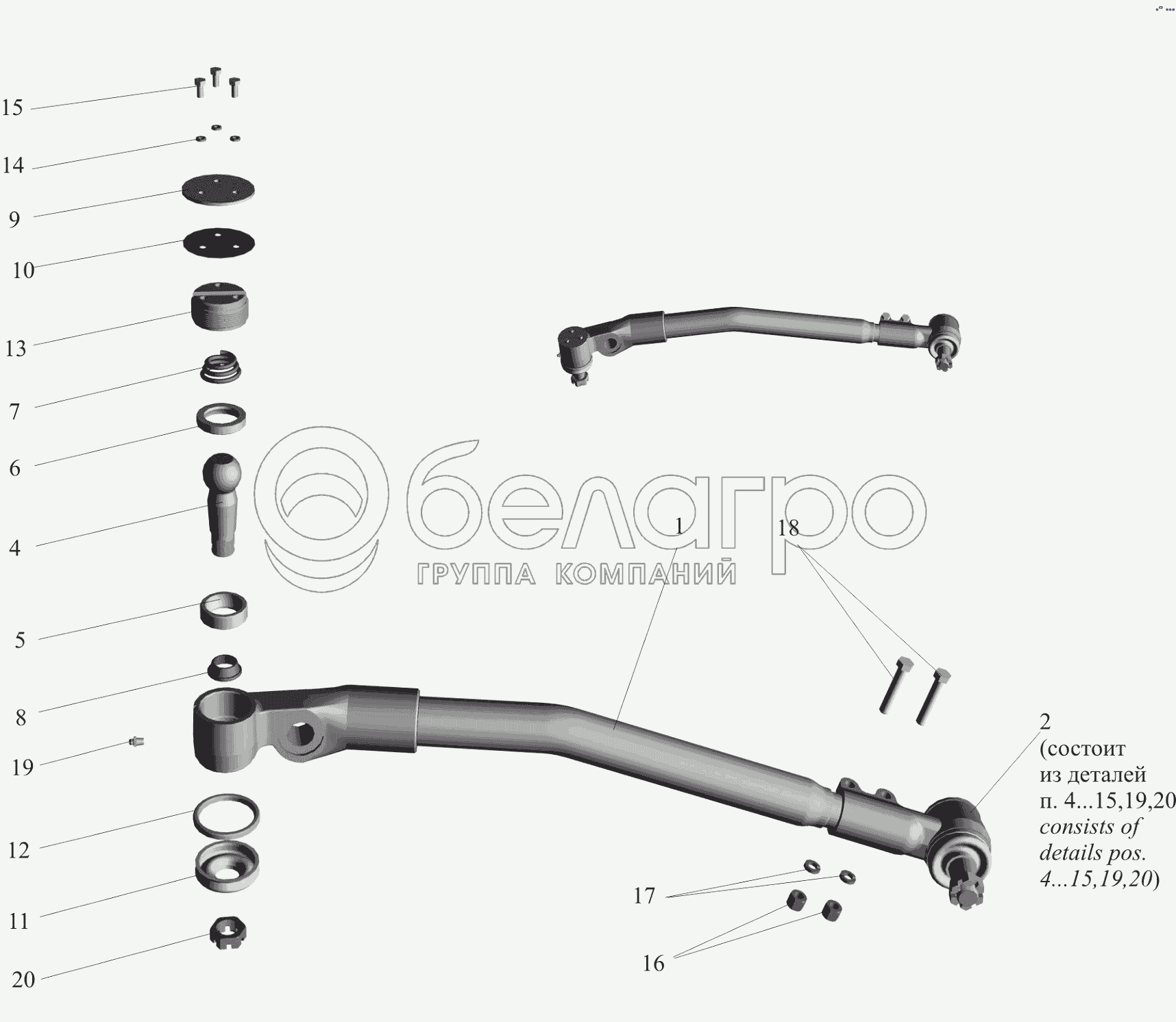 Каталог запасных частей к технике: МАЗ-650119. Тяга продольная 5440-3003010