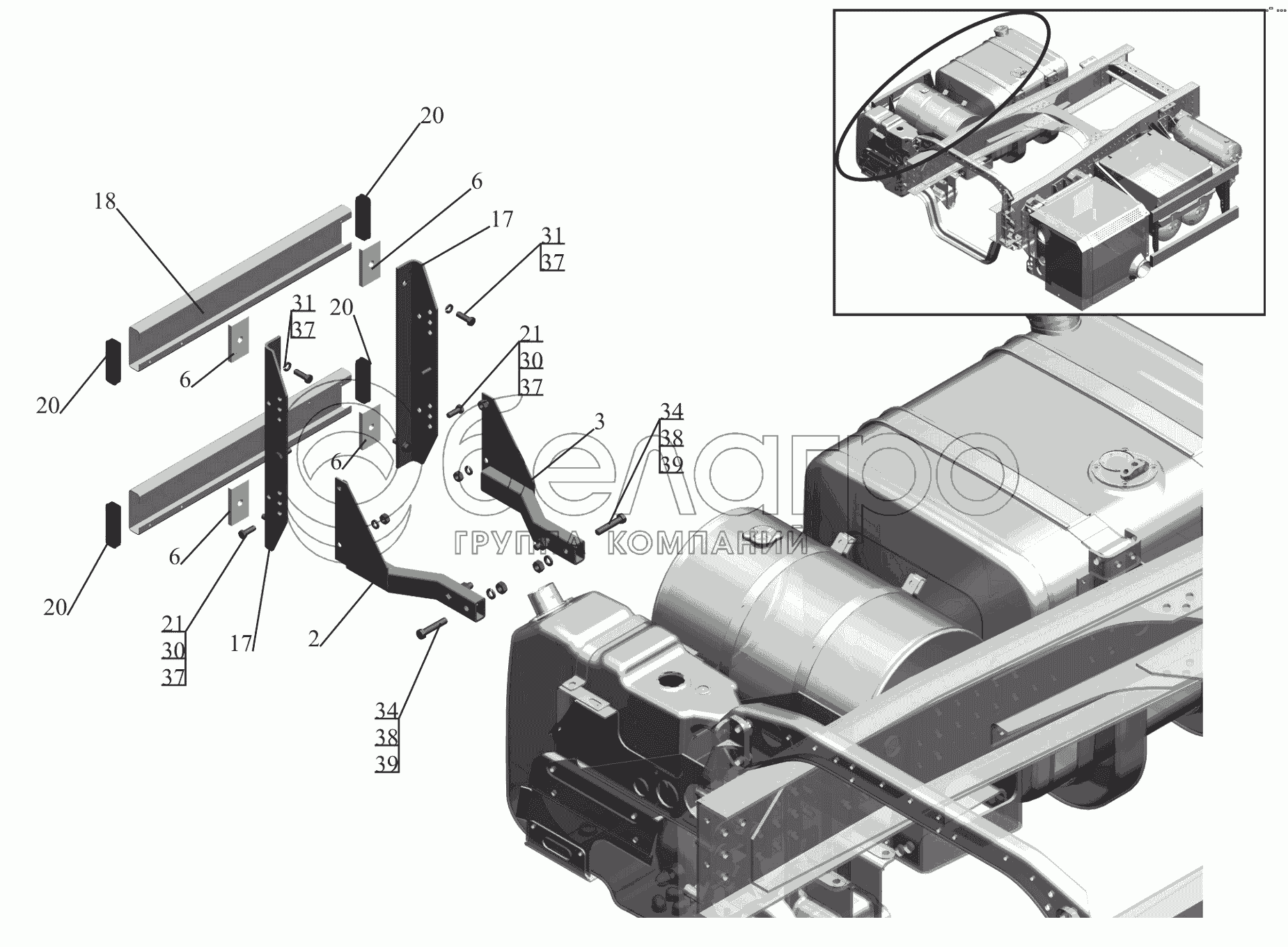 Каталог запасных частей к технике: МАЗ-650119. Установка бокового ограждения 650119-2800040