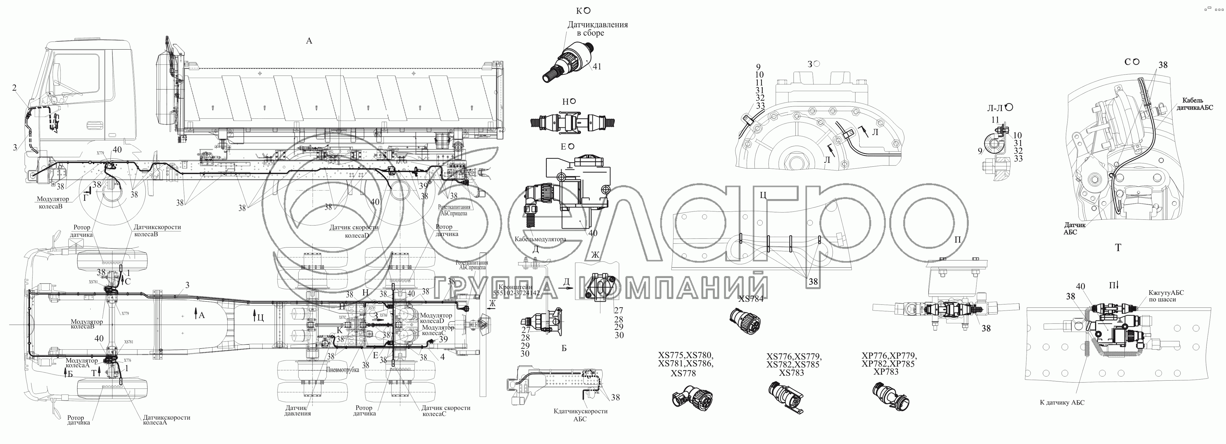 Каталог запасных частей к технике: МАЗ-650119. Установка электрооборудования АБС 650119-3800040