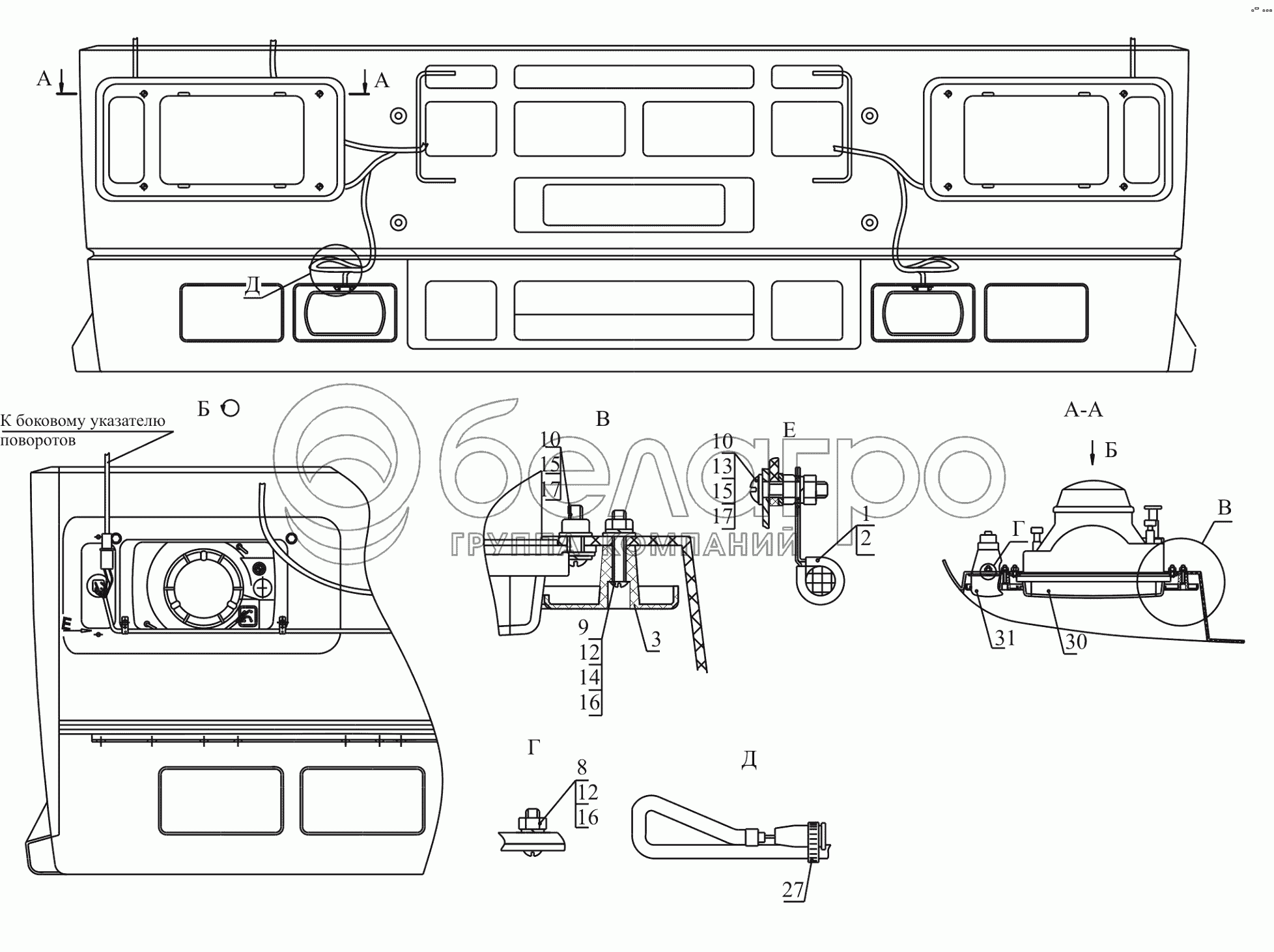 Каталог запасных частей к технике: МАЗ-650119. Установка фар 544008-3700006