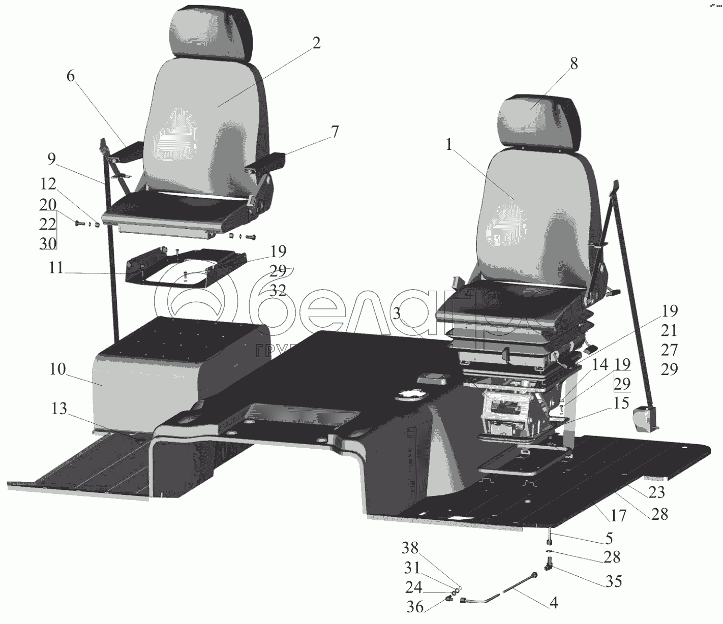 Каталог запасных частей к технике: МАЗ-650119. Установка и пневмопитание сидений 544003-6800006