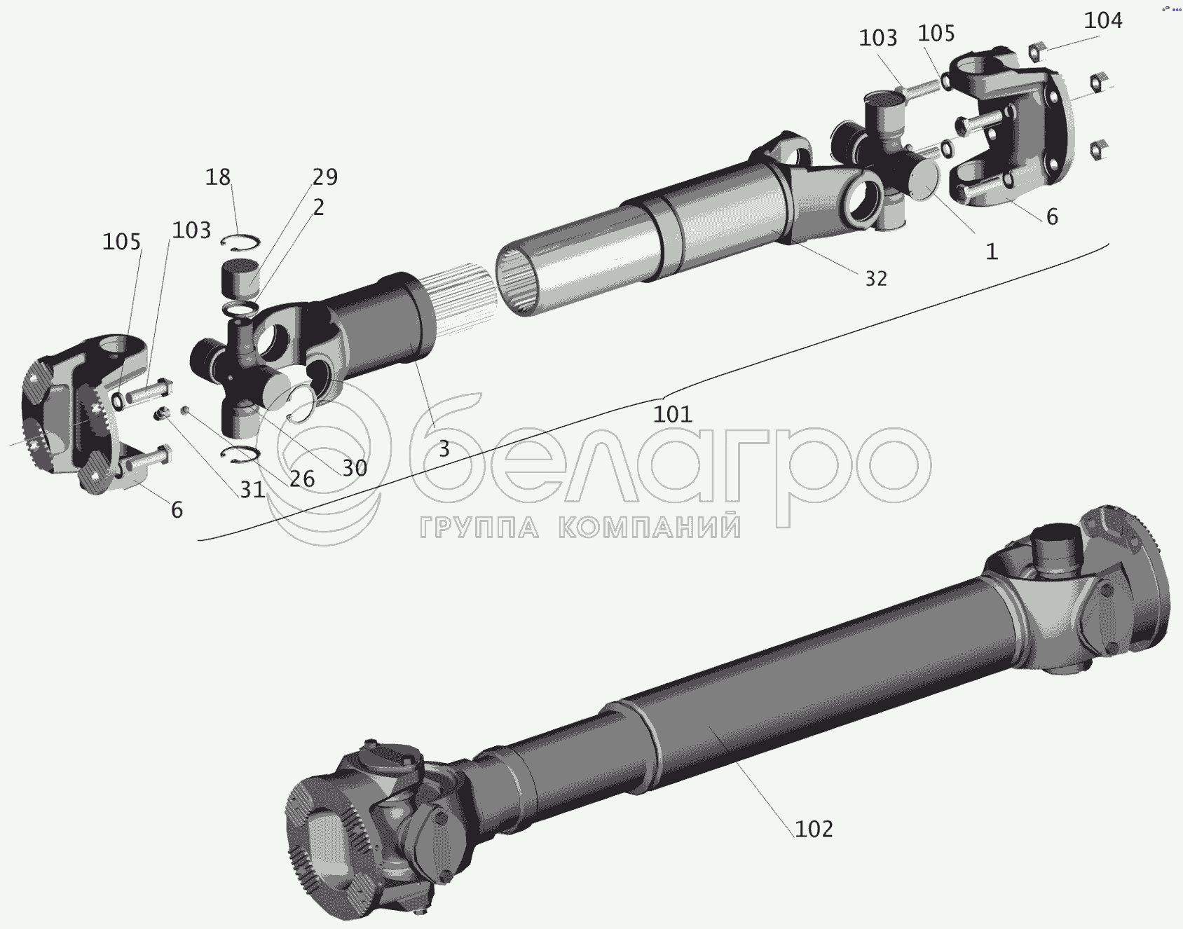 Каталог запасных частей к технике: МАЗ-650119. Установка карданных валов