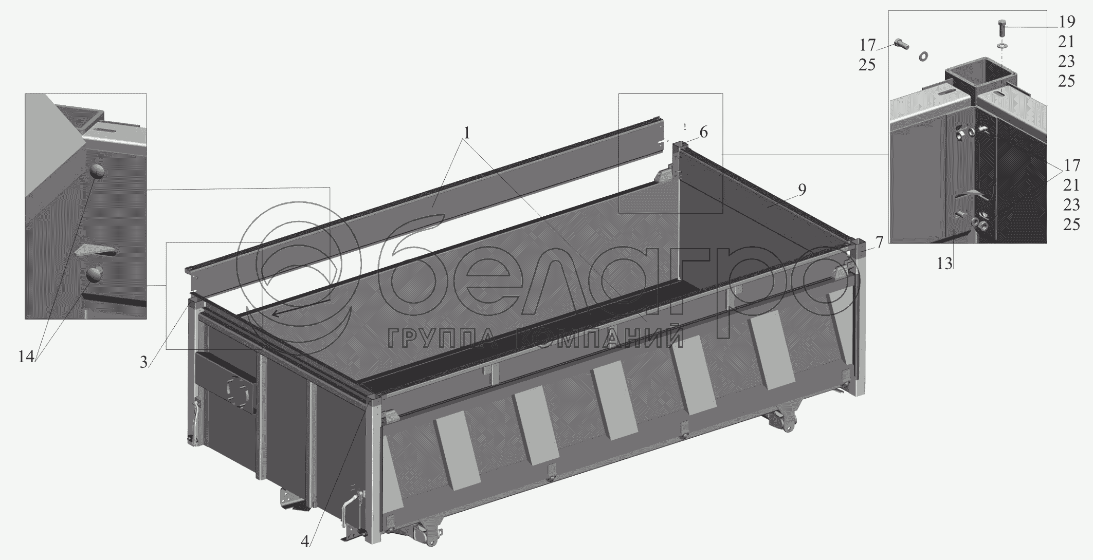 Каталог запасных частей к технике: МАЗ-650119. Установка надставных бортов 650108-8500012