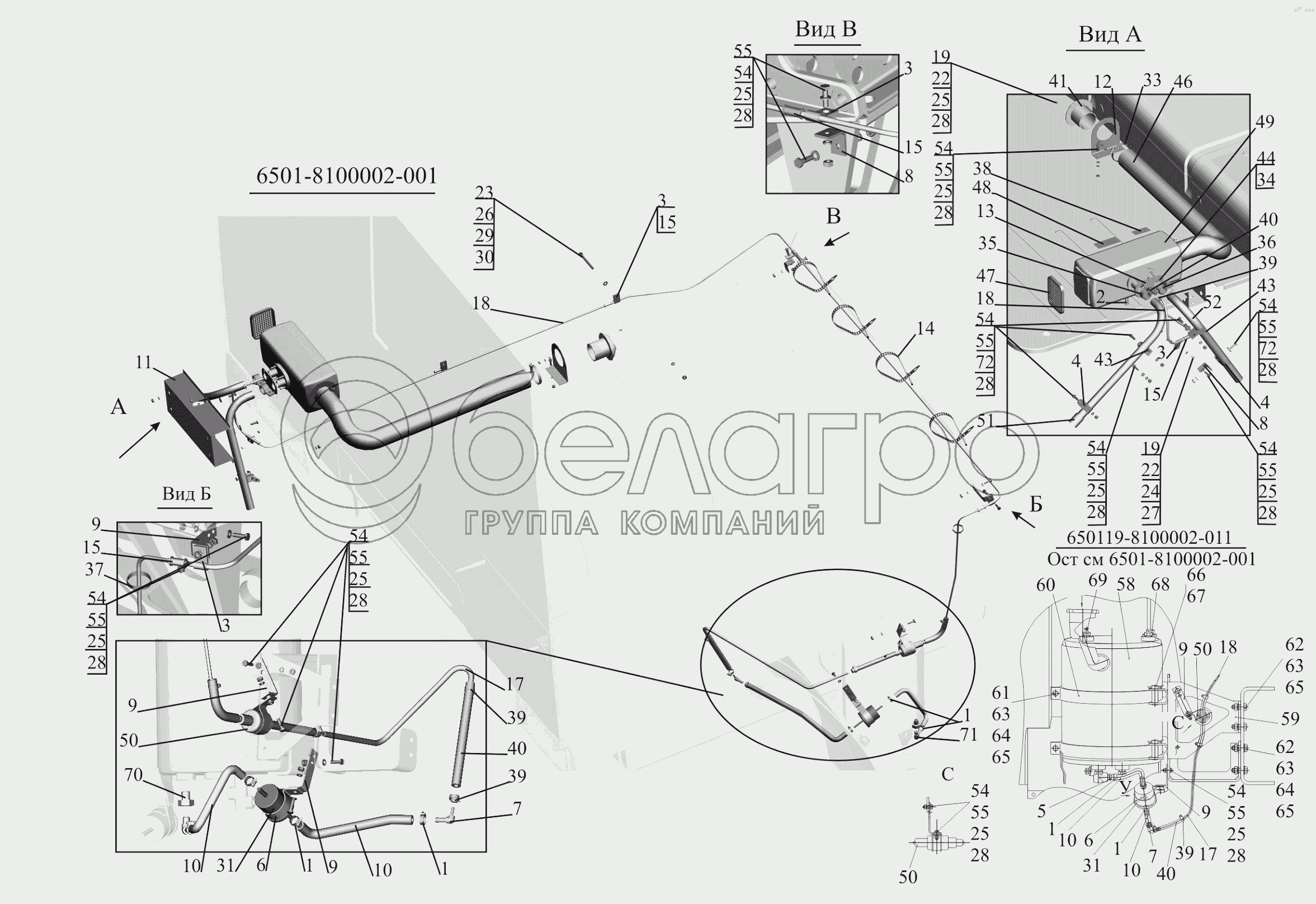 Каталог запасных частей к технике: МАЗ-650119. Установка независимого воздушного отопителя