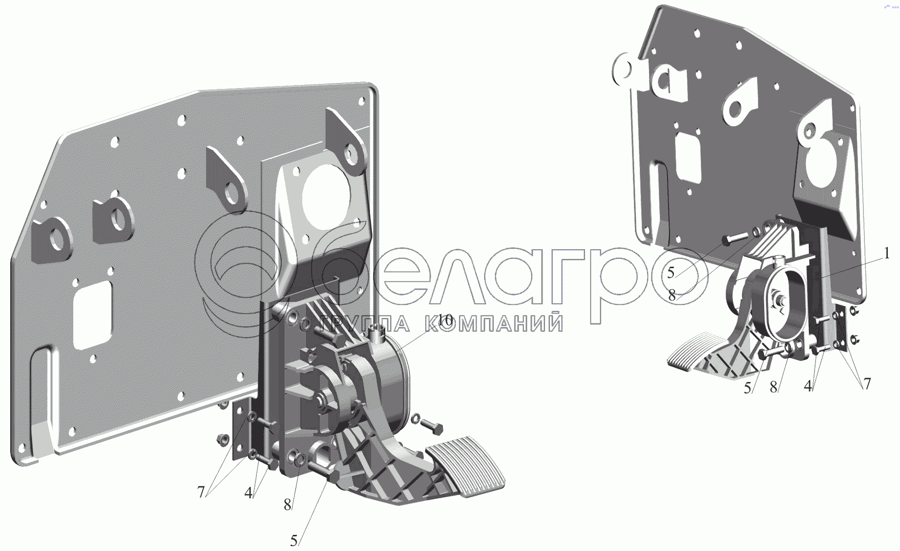 Каталог запасных частей к технике: МАЗ-650119. Установка педали управления двигателем 544019-1108002-010