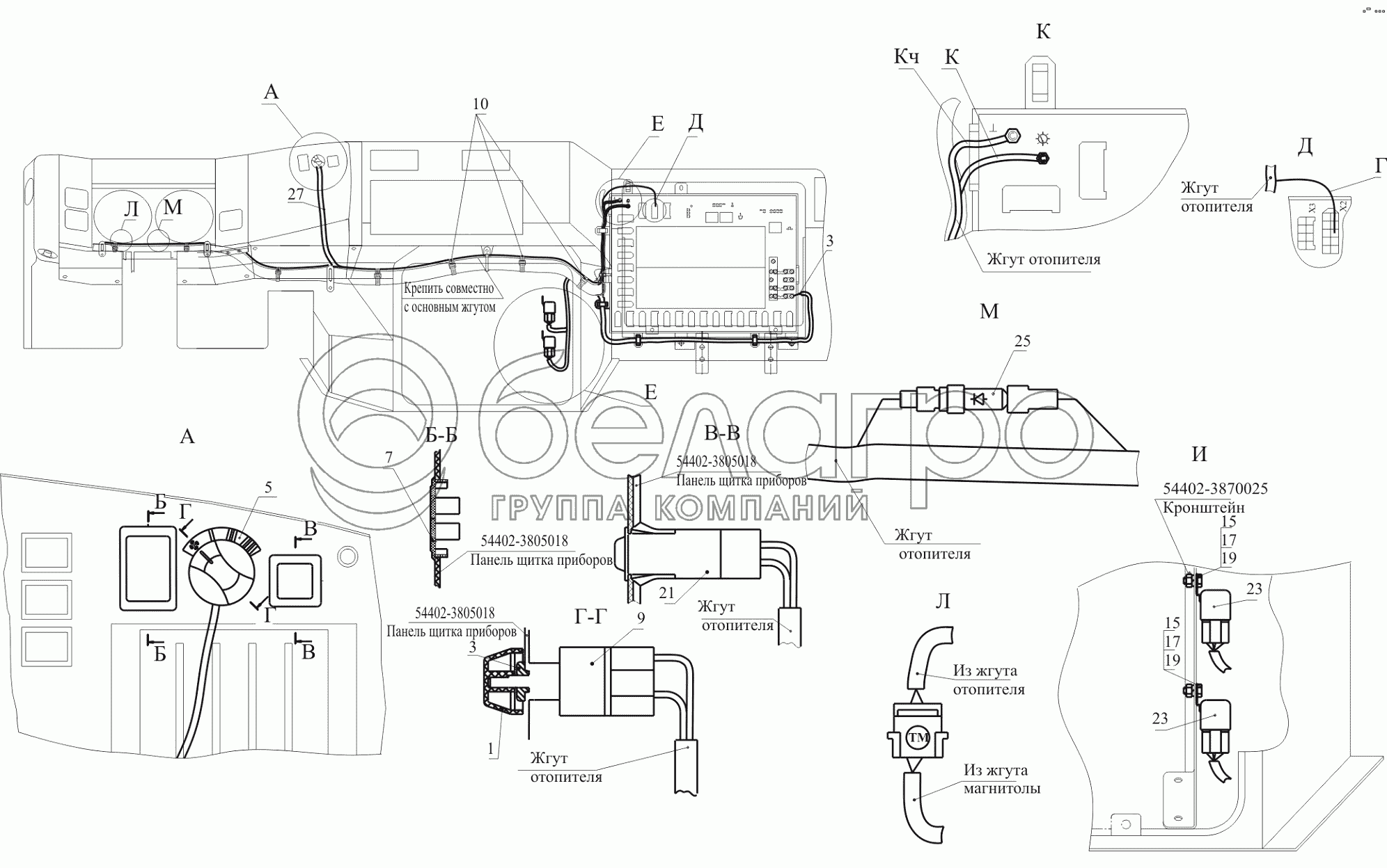 Каталог запасных частей к технике: МАЗ-650119. Установка переключателей отопителя 544019-3700100-020