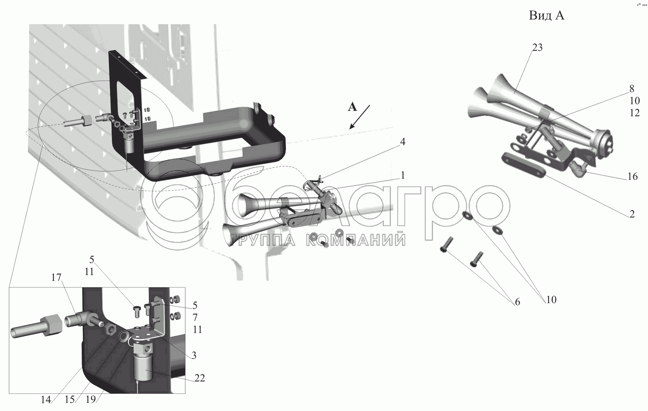 Каталог запасных частей к технике: МАЗ-650119. Установка пневмосигнала 6430-3700096
