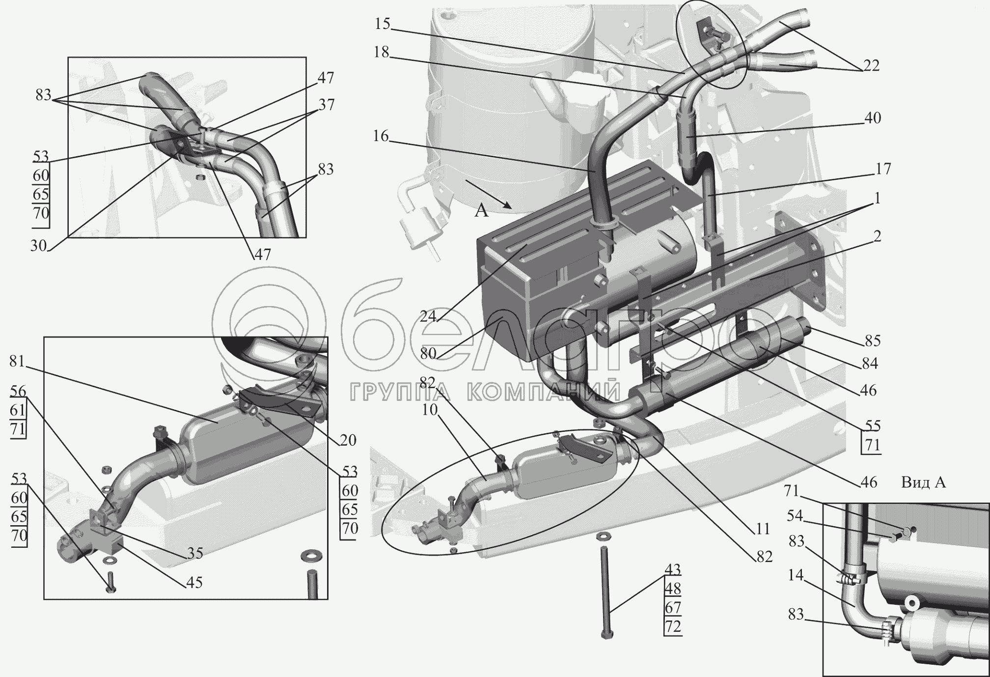 Каталог запасных частей к технике: МАЗ-650119. Установка подогревателя 544019-1015001