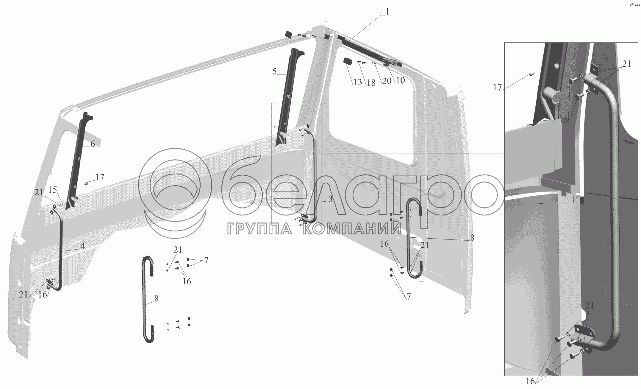 Каталог запасных частей к технике: МАЗ-650119. Установка поручней в кабине 6430-8200030