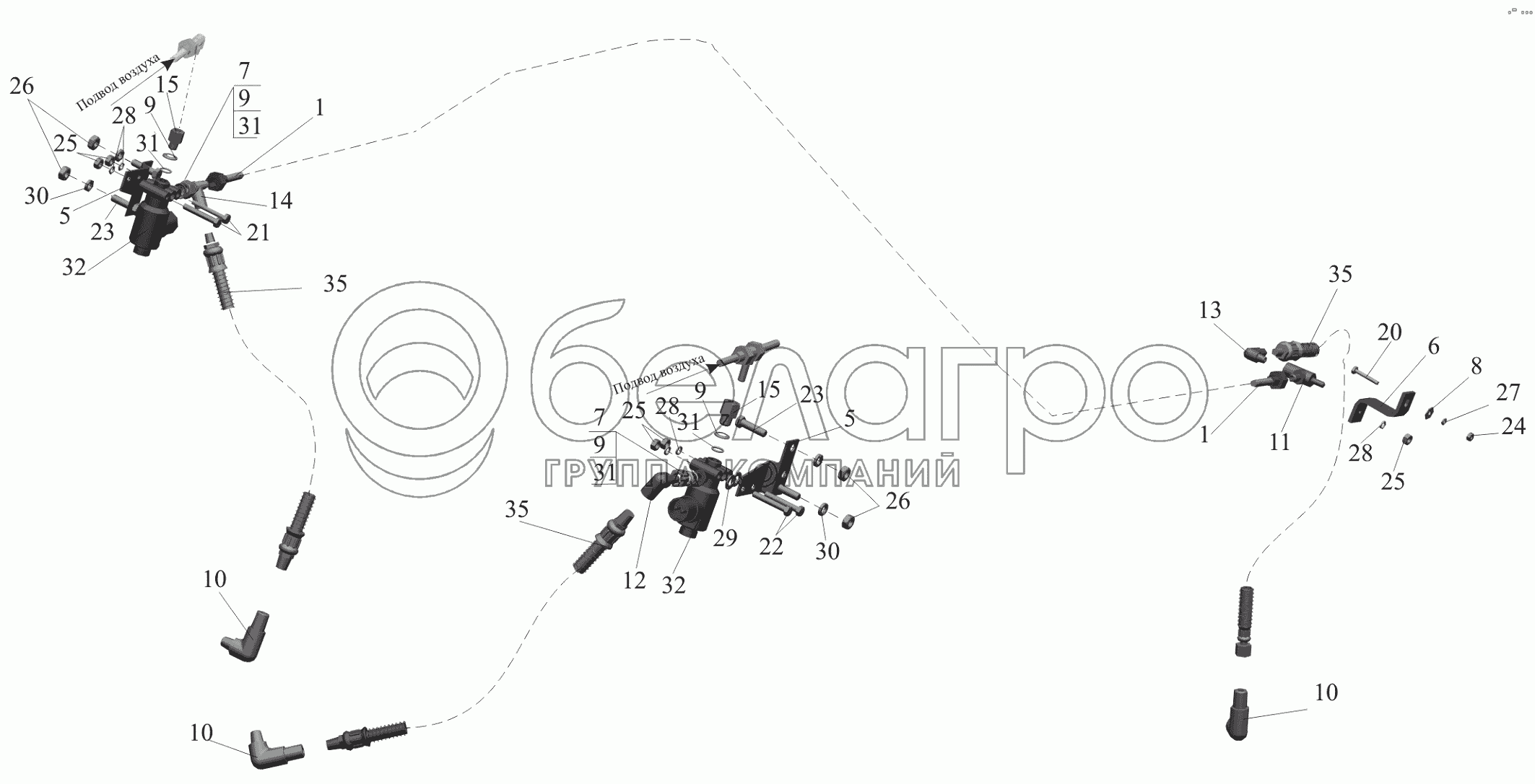 Каталог запасных частей к технике: МАЗ-650119. Установка привода управления блокировкой 650119-2500024
