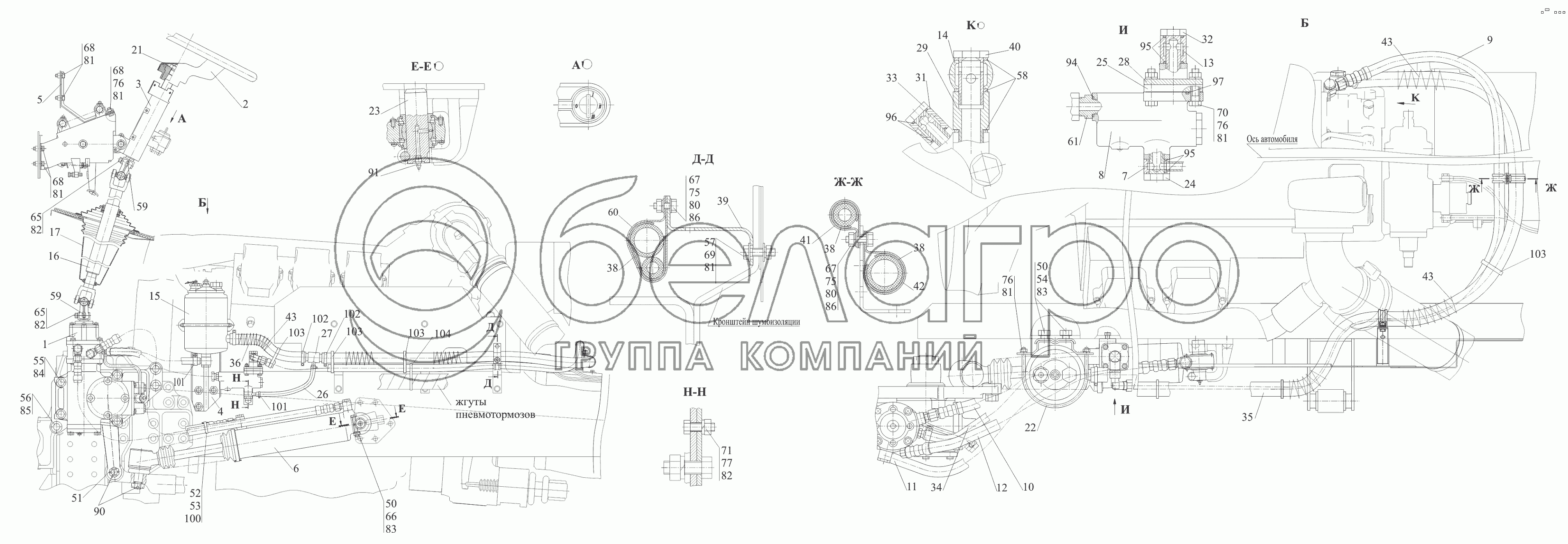 Каталог запасных частей к технике: МАЗ-650119. Установка рулевого управления 544019-3400001