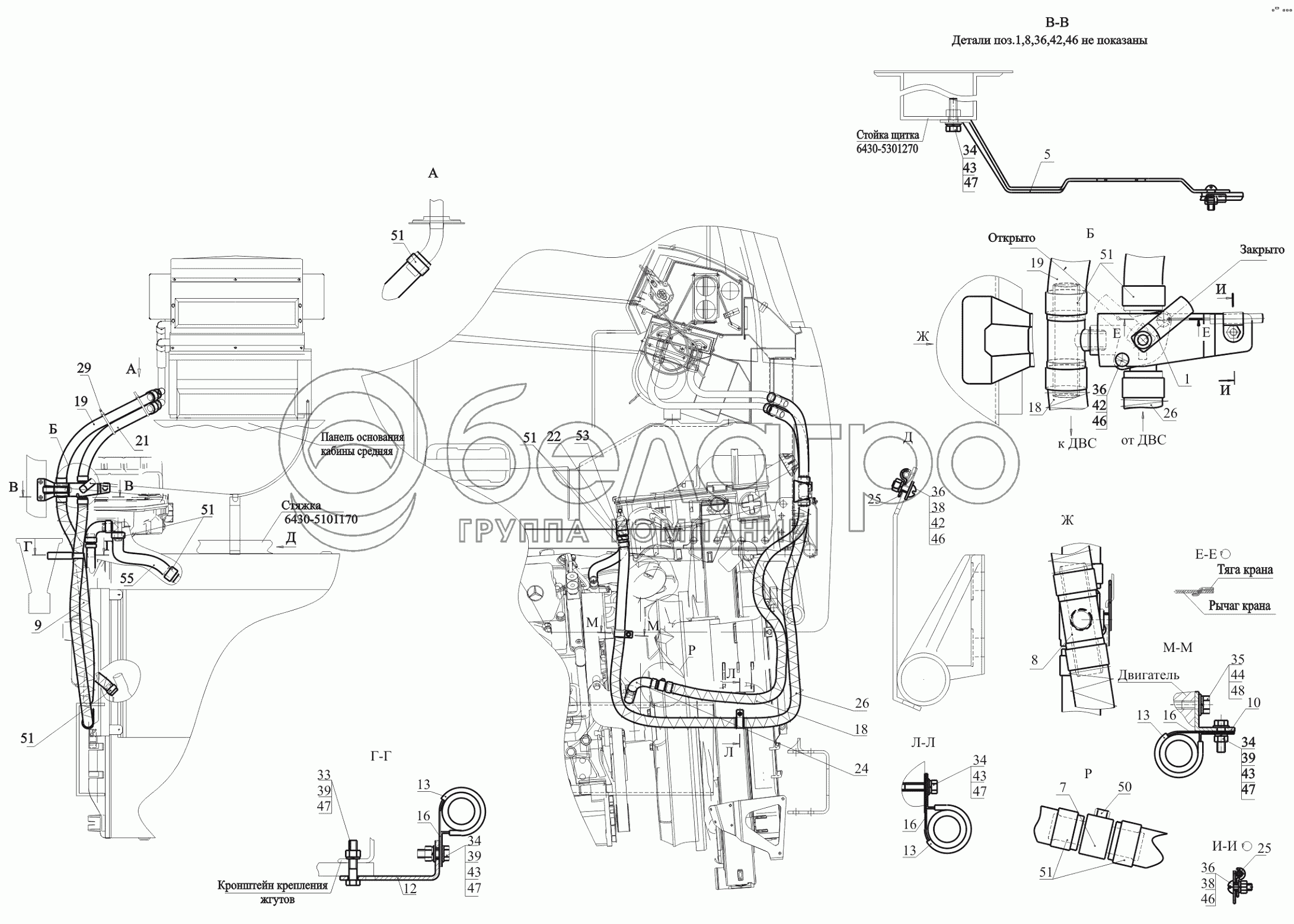 Каталог запасных частей к технике: МАЗ-650119. Установка шлангов отопителя 544019-8100006