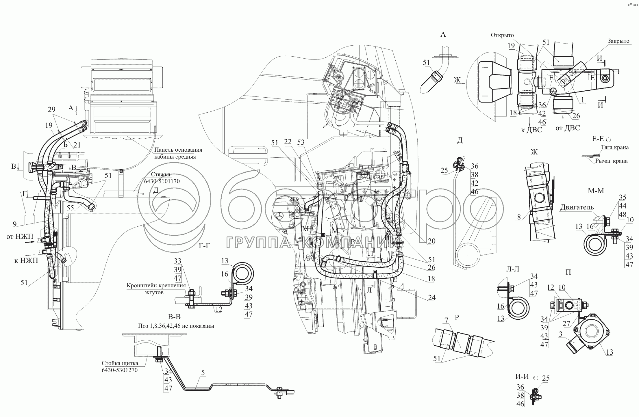 Каталог запасных частей к технике: МАЗ-650119. Установка шлангов отопителя 544019-8100006-010