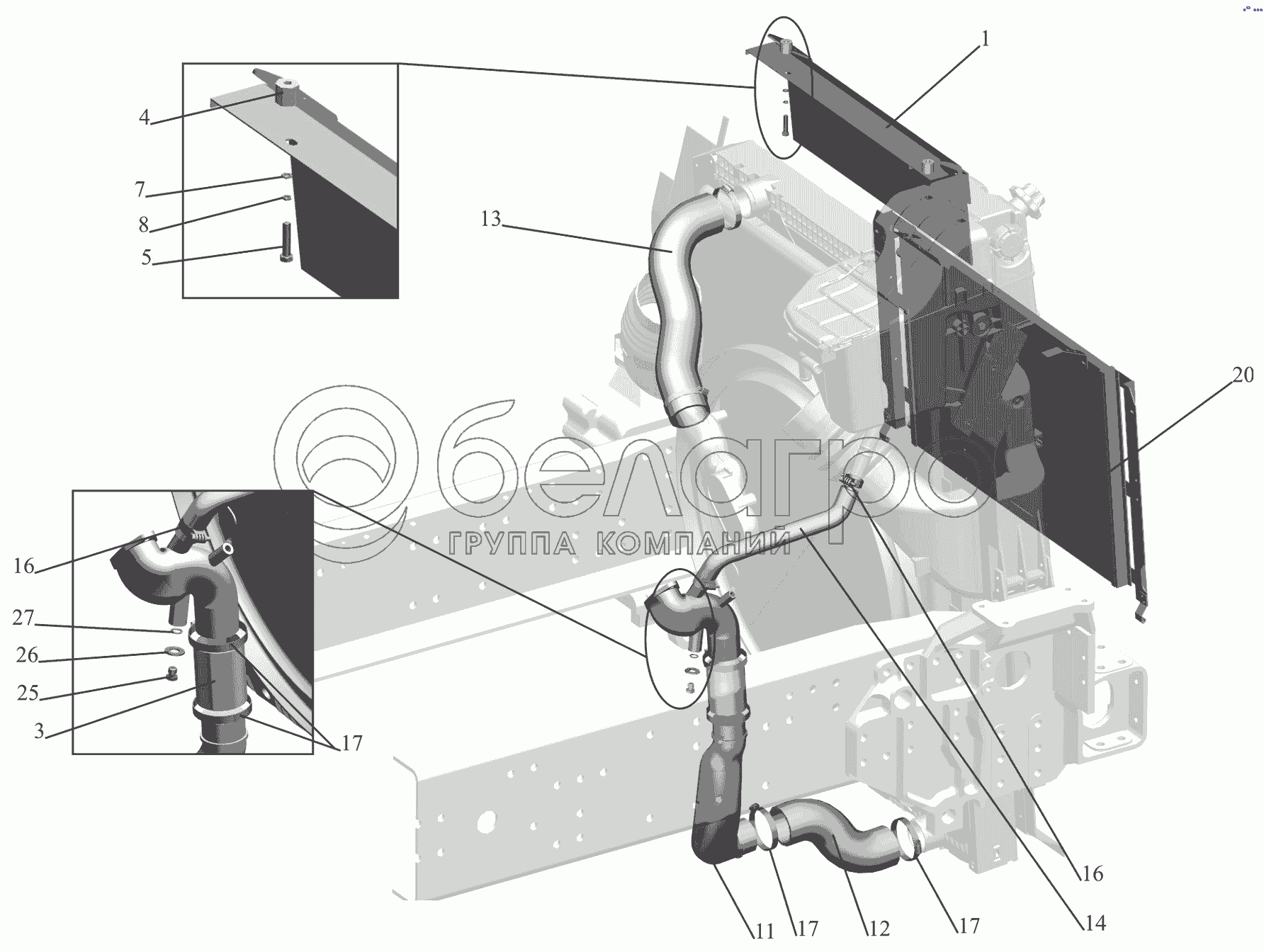 Каталог запасных частей к технике: МАЗ-650119. Установка системы охлаждения 544019-1300005, (-010)