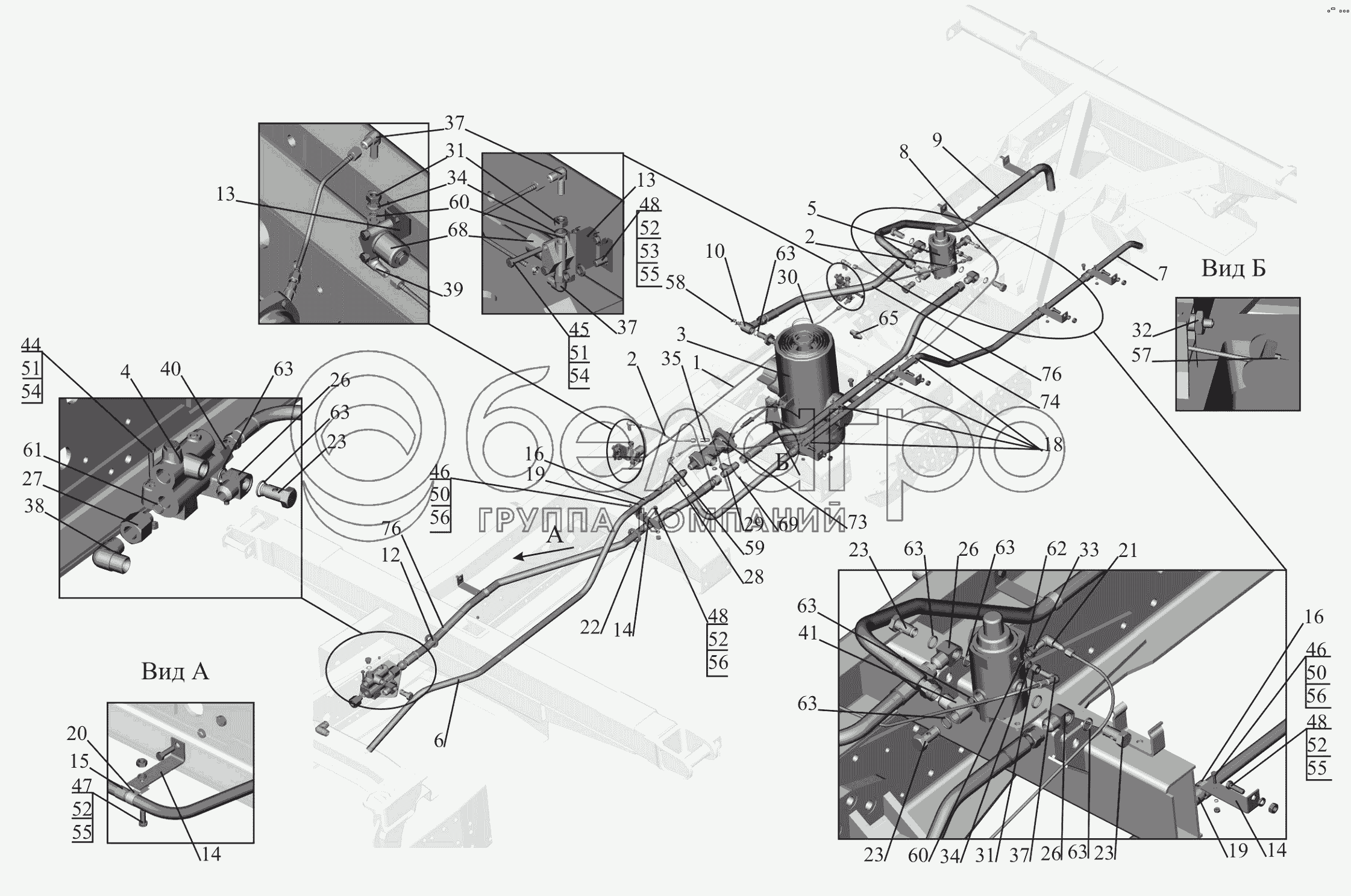 Каталог запасных частей к технике: МАЗ-650119. Установка цилиндра и клапанов 650119-8603500