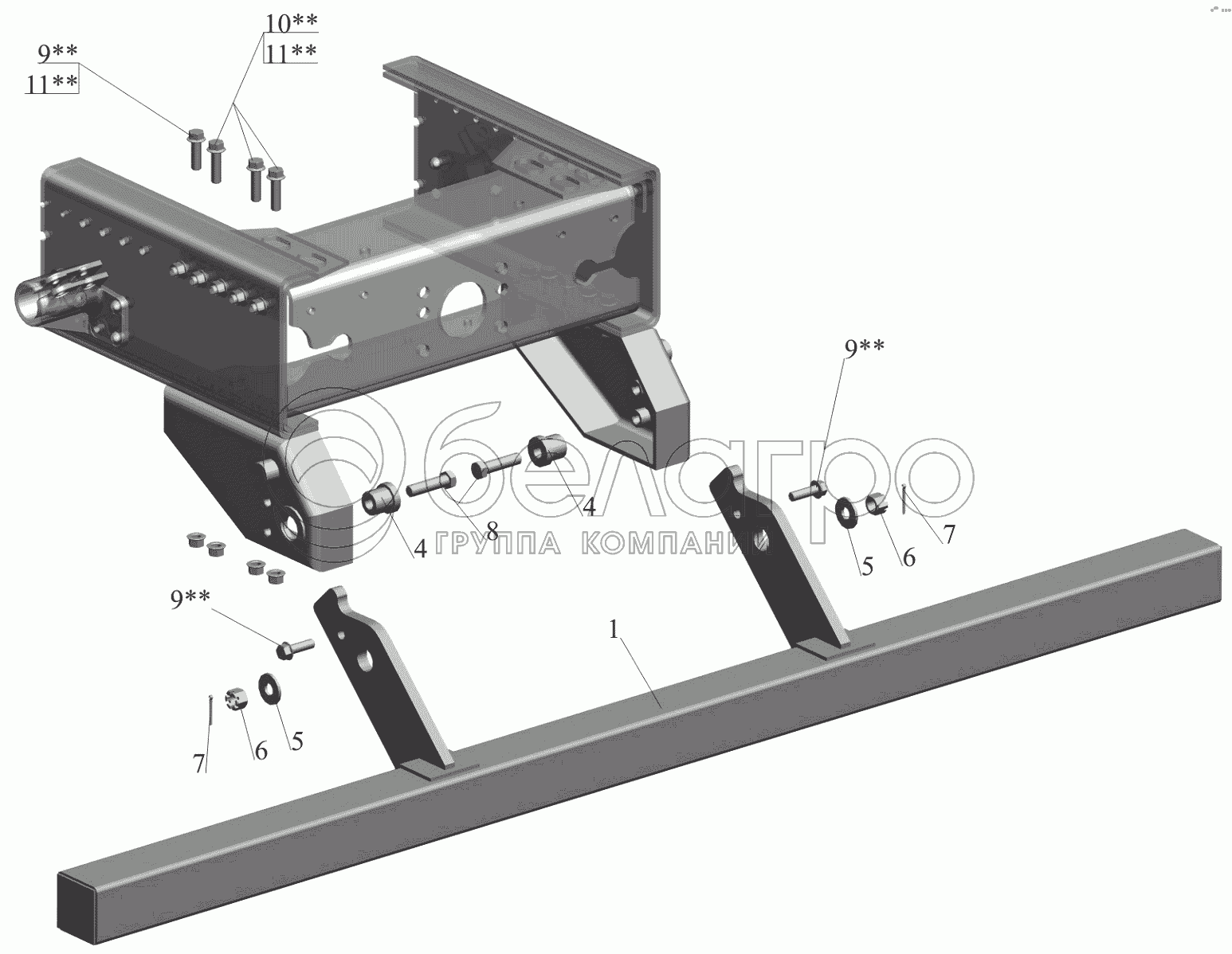 Каталог запасных частей к технике: МАЗ-650119. Установка заднего бампера